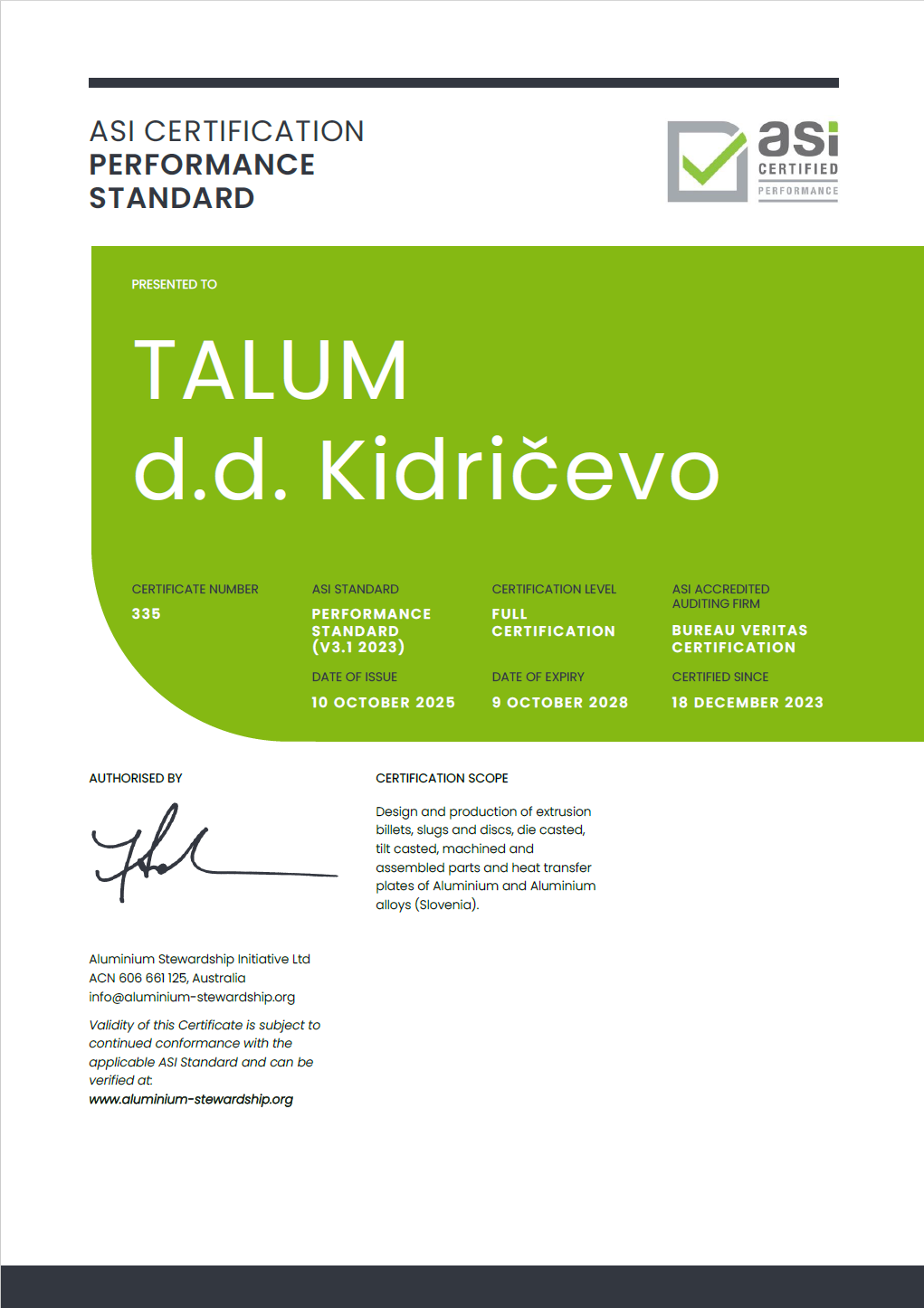 Skupina Talum zaposluje več kot 1300 ljudi in je najpomembnejši regionalni proizvajalec primarnega aluminija, livarskih zlitin, drogov, uparjalnikov in toplotnih prenosnikov, rondelic in ulitkov. Oskrbuje avtomobilsko, hladilniško, pakirno, prehrambeno in gradbeno industrijo. Talum je znan po odličnem servisu in kakovostnemu aluminiju za najzahtevnejše aplikacije. Imamo lasten laboratorij in raziskovalno-razvojni center.